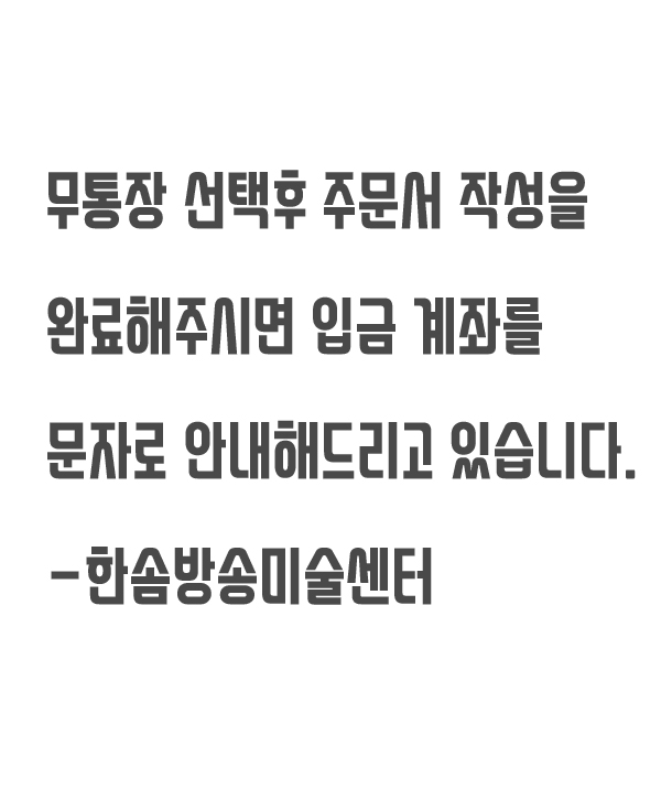 페이지 정보 작성자 운영자 작성일17-05-25 16:23 조회8,204회 댓글0건 관련링크 이전글 다음글 목록 본문 무통장 선택후 주문서 작성을 완료해주시면 입금 계좌를 문자로 발송해드립니다. -한솜방송미술센터 댓글목록 등록된 댓글이 없습니다. 이전글 다음글 목록