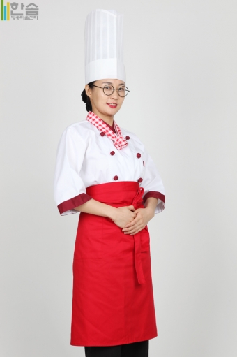 모자,상의,앞치마,타이